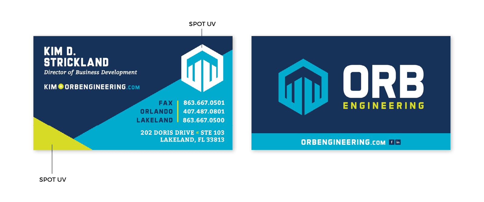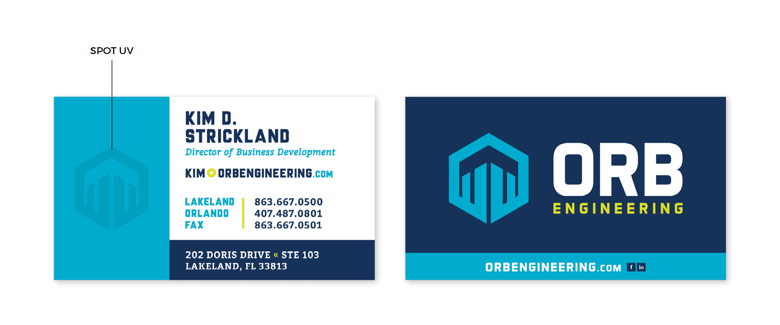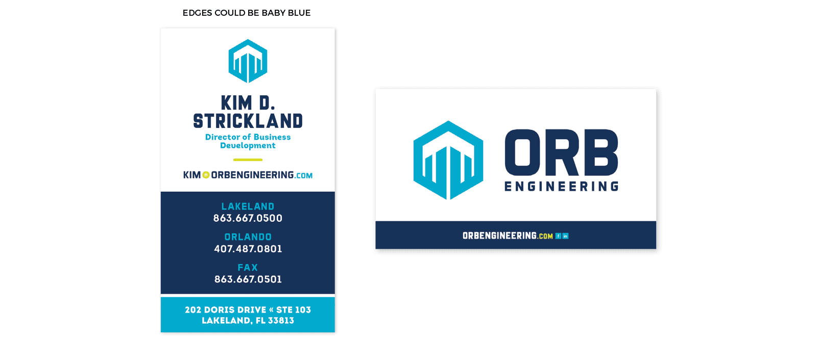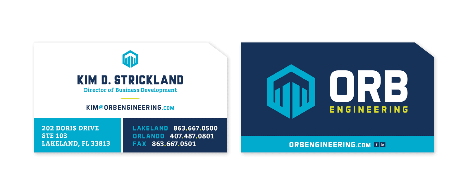 ORB Engineering is a full-service engineering firm in Lakeland, Florida. The firm handles all aspects of a project for their clients, including planning, analysis and design. While the principles of the company are polished, their existing brand identity was not. We started working with ORB to develop a custom logo that better represented the firm and then moved on to business card development. This is a natural progression for most of our clients.