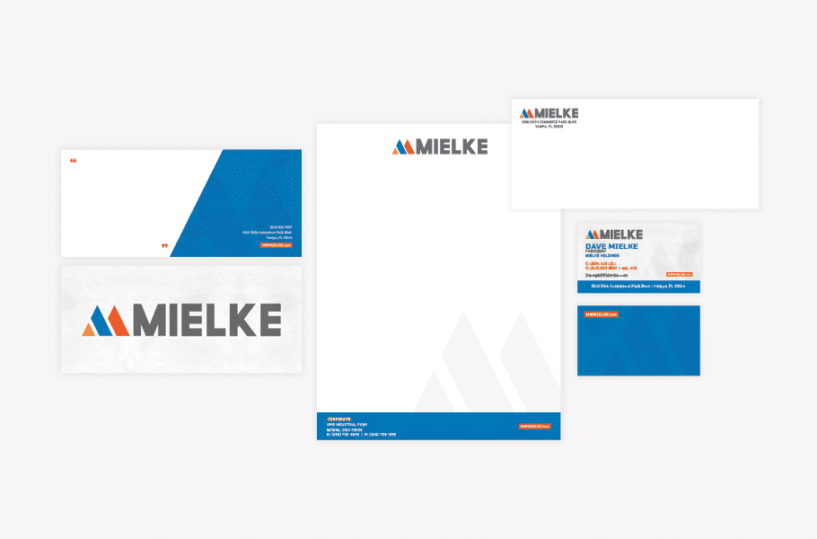 During the industrial branding project, we recommended that the firm pare the business name down to just Mielke. The new name would allow them to promote all key services lines equally. It would also equip the company to add and change service lines as needed. Finally, the revised would also make for a name that would be strong enough to form the foundation for a bold brand.