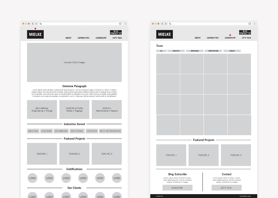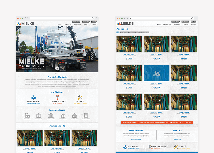 This was one of the most challenging aspects about the website design project for Mielke. The client’s desire was to have one website for each of the main service lines, all falling under the main domain: www.mielke.com.