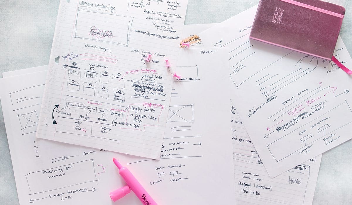 As evidenced in the paragraph above, AP2 is a seemingly complicated little gem of a client. Multiple locations with varying brands, different company names with different URLS, all operating under one single parent brand. They service primarily physicians, but they send bills to patients as well. So, their web presence needed to address both patients and providers. Patients needed to be able to identify that AP2 was, in fact, a legit company they can trust, and they also needed to access a portal for bill pay. For providers, we needed to create an online source for downloading forms, ordering supplies, and accessing a directory of providers, among other things. Not only would the forward-facing portion of the site change, but the backend administrative piece of the site needed to be simplified, as its current functionality was archaic and inefficient. In order to flesh out exactly how this one website could be everything to everyone, our Creative Director sat down with the AP2 head honchos to put pen to paper and problem solve.