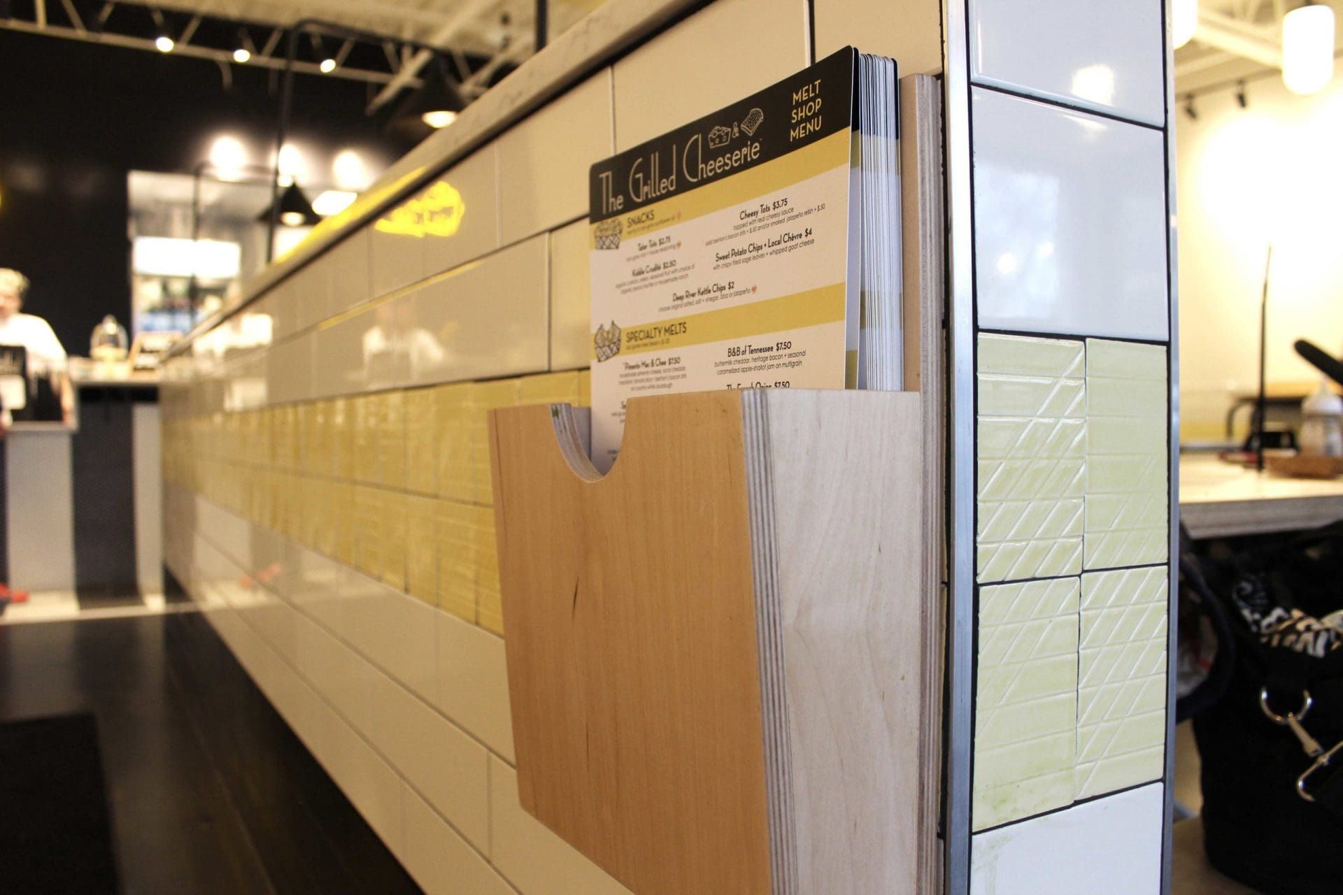 Let’s start by saying there were a lot of elements that were way cool and way on-trend. If you open a restaurant in Nashville right now and don’t have a custom neon sign, well it doesn’t take a branding expert to know that you missed the mark, right? The Grilled Cheeserie has a custom yellow neon sign, mounted on a black wall, as one of the focal points when you walk in, behind the register. restaurant branding review And yes they did get the custom neon sign right, but that icon graphic making up the neon sign is lacking some luster. My best guess is that it is something that was carried over from the food truck brand or something the owner had an affection for that couldn’t be torn away. But, you’ve broken my heart here. This could have been way freakin’ cool. The other thing that is already flooding social feeds is the Milkshake Bar in all it’s glory. A-Triple plus, plus, plus for this area. It’s lined with vintage hexagon tiles placed in vertical lines in black and white. Definitely gives the old school diner feeling with the stools made of metal powder coated white and wood, along with the vintage style lighted sign. This, folks, is how you use the power of the selfie for shameless, free marketing. Retail was big. There’s a fairly large retail wall structure to the left immediately as you walk in. Overall, I loved the homemade feeling of the retail display but there was nothing on there that I just had to have. Personally, I get it. You’re waiting in line and you might want to pick up a cap that says Grilled Cheeserie because that’s what’s trending on the pinterest fashion boards right now… right? No, I don’t get it — I lied. Where are the grilled cheese options — I’m hungry! My suggestion. If you’re going to sell retail at your restaurant, make me first fall in love with your food and then I’ll possibly pick up a hat to show my brand ambassador’ness’. Give me something cool that has a design to it that supports your brand, and then put your logo on it as a supporting element. Create something cool and eye-catching, that just so happens to have your logo on it somewhere discreet. The goal is to get people asking, "Where'd you get that hat?" There’s a small wooden menu holder opposite the retail space, like real small, serving as home to a handheld menu. Paper choice, nothing better. However, the layout and composition could have been much more compelling. There's an opportunity in menu design to drive the diner in a certain direction, and while informative, the menu design wasn't as enticing as we would have liked. More details on the overall menu design below. Here’s my honest opinion after digesting this whole entry area. The first huge thing I see when I walk in is Milkshakes, which while pretty, is not really the main event. Then I notice this oversized retail area trying to sell me things that tout a brand name or icon that I don’t yet love. Then, if I look really hard, I might find their food options which is what I originally came to the place for. I really recommend that our restaurant clients focus in on what makes them unique, and avoid the temptation to throw any and everything at their environmental design. Here I say... show a little respect to the grilled cheese! It’s what made you who you are today and I can’t even find the creative options you worked so hard to invent as I look around your space. I will note that there’s a little bit of wall space to the right of the retail display. This is prime real estate for an oversized menu board and would be a great way to make grilled cheese the focus. Kudos to the kitchen area. It is, to the naked eye, pretty freakin’ cool. It’s got some square kiosks, hip aprons, stainless steel open shelving storage, and the Milkshake Bar. If nothing else, a picture of this makes the social viewers think this place is the next big thing in Nash-Vegas. I think that the font usage in the brand and environmental design is derailing the cohesiveness of the brand a bit. While you're welcome to mix fonts, there's a method to the madness and I do not think there’s enough consistency in place here. An inappropriate mix of fonts within your brand and environment can create in viewers a feeling that something is just "off," so font choice is not to be overlooked. Seems like the rules here were to use some sort of a sans serif font. Certain signs screamed trendy, round, nostalgic and geometric sans serifs. Other alluded to old school diners, but yet others looked stretched and distorted. A little bit of love in the font world would have probably helped unify the brand and the space a bit more. I saw this again in the illustrative styles the restaurant was using. Just really not all coming from the same perspective or style. I think a big difference could have been made had a little bit more attention been shown to consistency within illustration. Subway tile with dark grout was found in places. Subway tile with white grout was found in places. I especially liked the detail in the yellow runner tile displayed amongst the white tile in various spaces. This took me back to the old school, vintage feeling that I truly think the restaurant is after. The seating choices were for everyone. White and light wood modern picnic tables were found, which I think serves as a nod to the seating you may find in a food truck park, which carries forth the beginnings of the brand. Black diner style metal chairs paired with marble top tables were found. And just the coolest little window bar seating, as previously described. So date night, study sesh, or playdate — all bases were all covered. The menu design was printed on a very thick, durable, paper. That was nice. Overall, it definitely presents their offerings in a clean, easy to read layout. Social was present and brand colors were there. Is there room for improvement? Yes — always. The overall composition and layout was lacking luster. Basic design