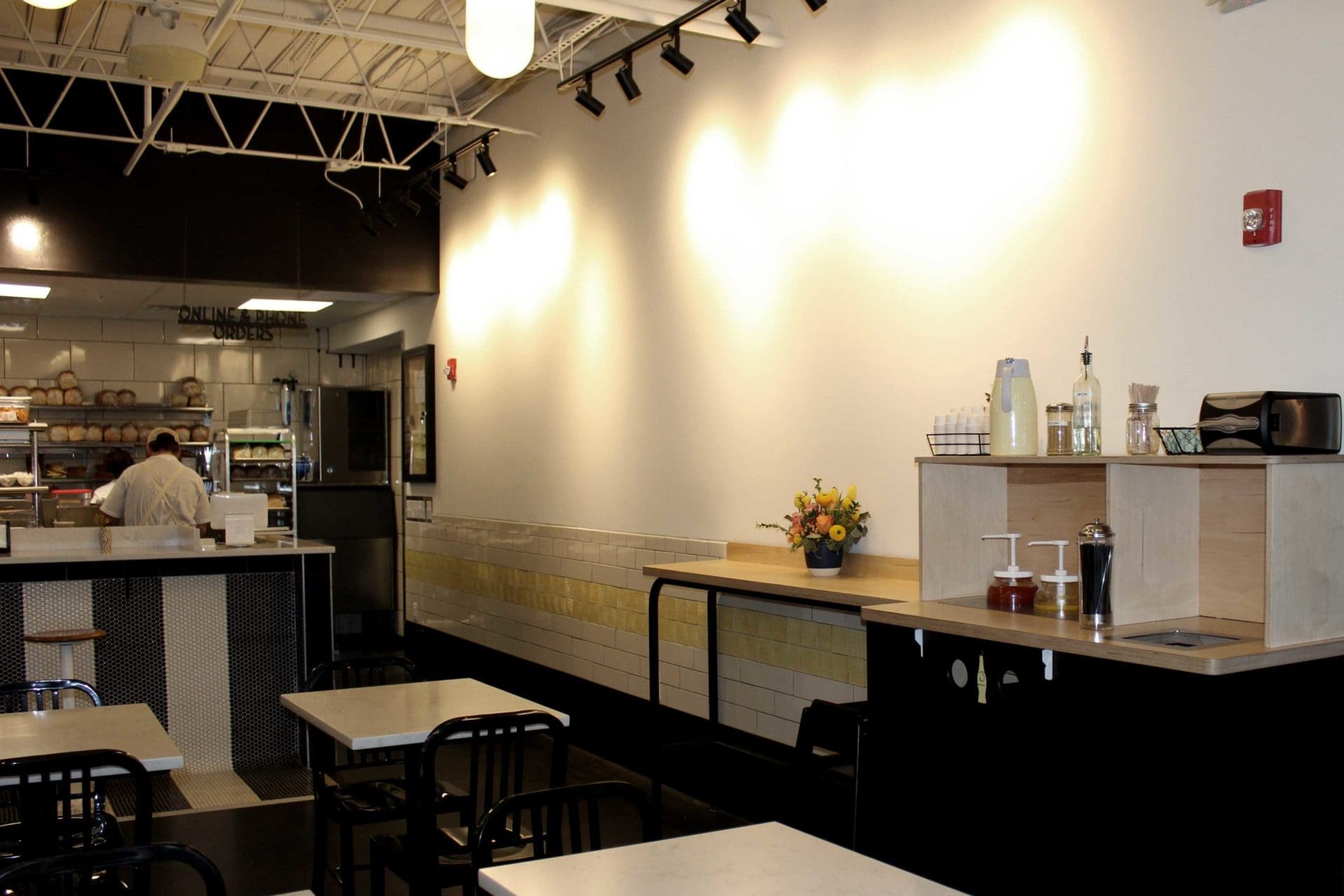 Starting with the storefront, the exterior of The Grilled Cheeserie left me wanting more. There were elements of excitement though, specifically the floor-to-ceiling window with a bar height seating area. Bar height table in front of window wins — always.  The window gives the restaurant a real big city feel with a bar height table running the length of it and wrapping the adjoining walls. This is definitely a great place to sit, enjoy and observe. Most likely to become a very coveted seating area within the space. Along the bottom of the window, there’s a pattern of what appears to be macaroni in white vinyl, along with some descriptive menu item words in a sans serif, half diner, half century/gotham style font (more on font usage later).  Additionally, this space boasts of product images with a kiddy, illustrative, hand-drawn style. restaurant branding review The pattern initially throws me off because this is a grilled cheese sandwich shop, not a pasta shop. I get that they put macaroni on ONE of their sandwiches, but that noodle is a strong element carried throughout the environment, and it is not even the same noodle shape that came on my sandwich. Details baby. Who knows here though. Maybe there's something deeper that I'm missing. I would have suggested that with this noodle being a prominent brand element, the restaurant should have invested in an illustrator to make a macaroni icon that was 100% their own, and a true representation of the only noodle I’ve ever been served between two pieces of bread — because that is unique and a point to build a brand connection upon.  Looking up to the facade of the restaurant, there’s some black and white vertical striping on the building. This is great thinking because it’s carried over from their truck; however, this could've been taken one step further. The stripes would have looked extremely attractive as an awning over the window or lining the whole exterior space of the building. I personally think the black and white awning over the window would have given a strong nod to the window of the food truck that so well established their name.