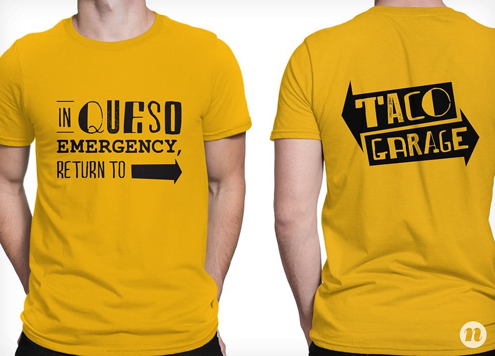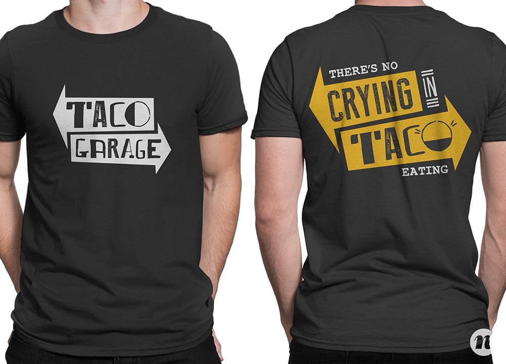 A restaurant’s staff should be walking billboards for the brand. This includes what they are wearing and how they communicate with customers. We worked to determine staff attire, including a custom shirt design and a hat that would bring in the casual-cool aspect of the brand. The attire is simple, recognizable and easy for the restaurant to maintain. taco garage apparel design