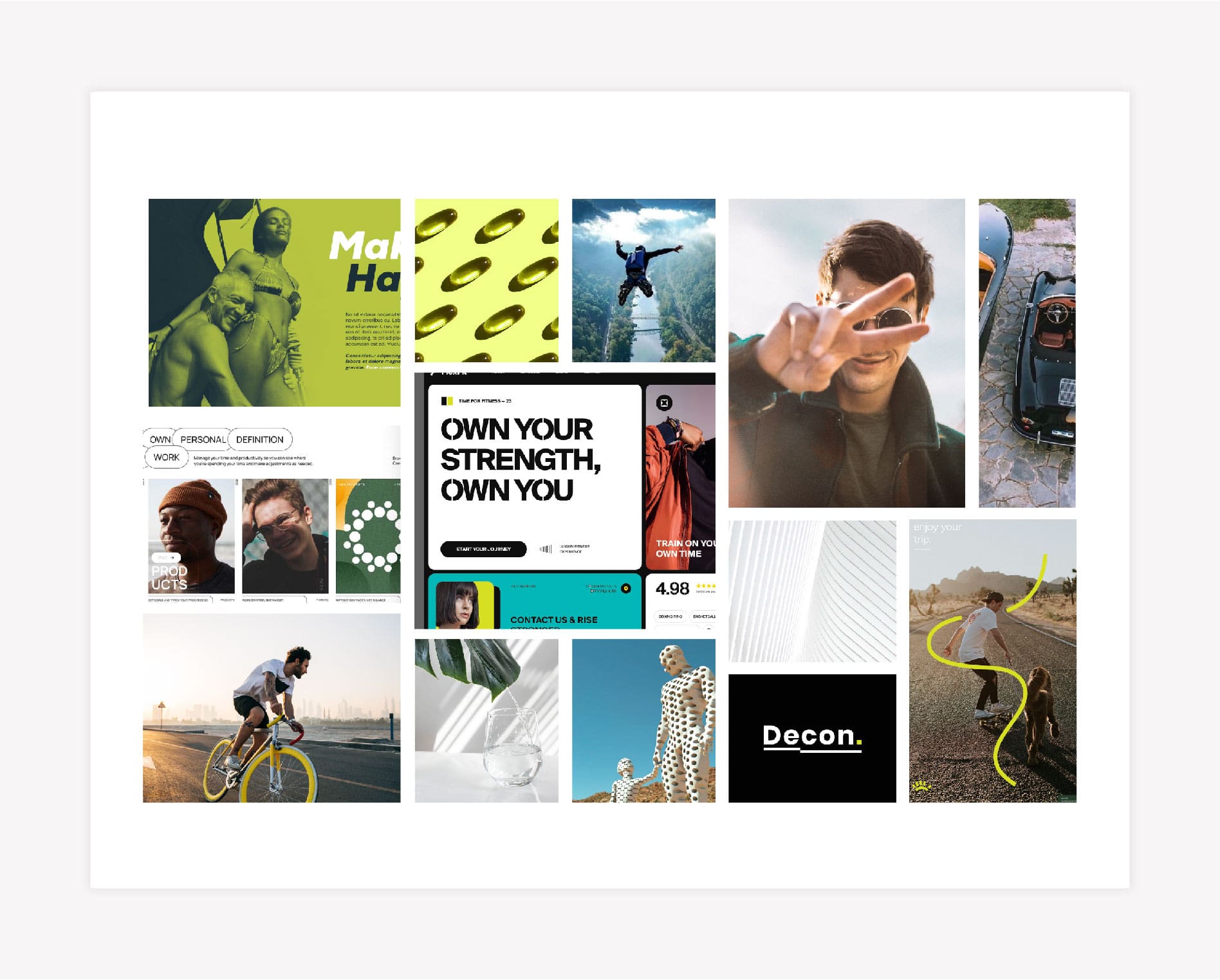 As part of our Prime Branding Package, we created a mood board using images that portrayed an active lifestyle and approachable branding. Our branding experts selected images that are simple and personable, with a focus on blue and green visuals. We pulled these images to hone in on the clinic’s everyday relatability and approachable atmosphere. This is expounded upon with the color palette of blues and greens.