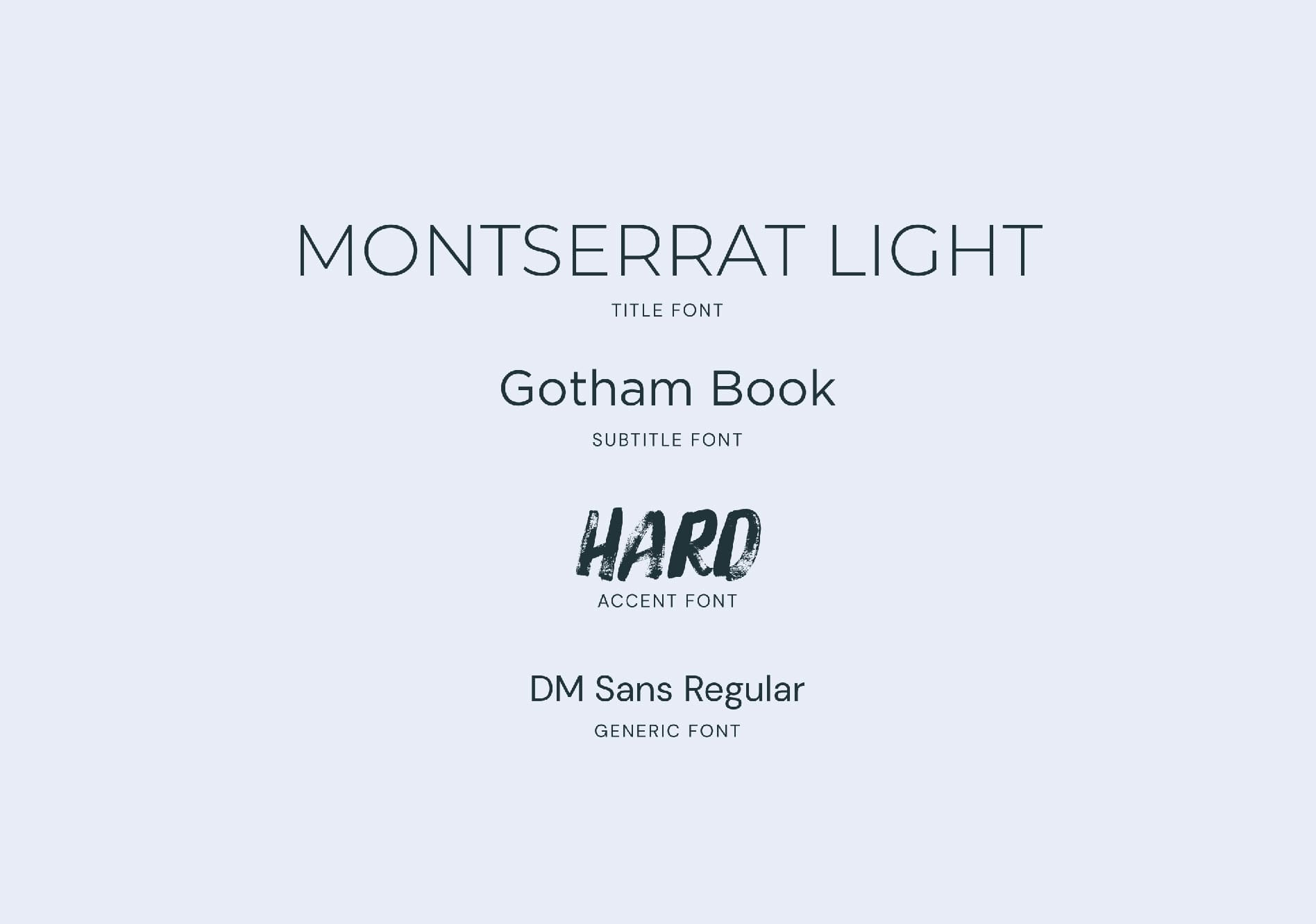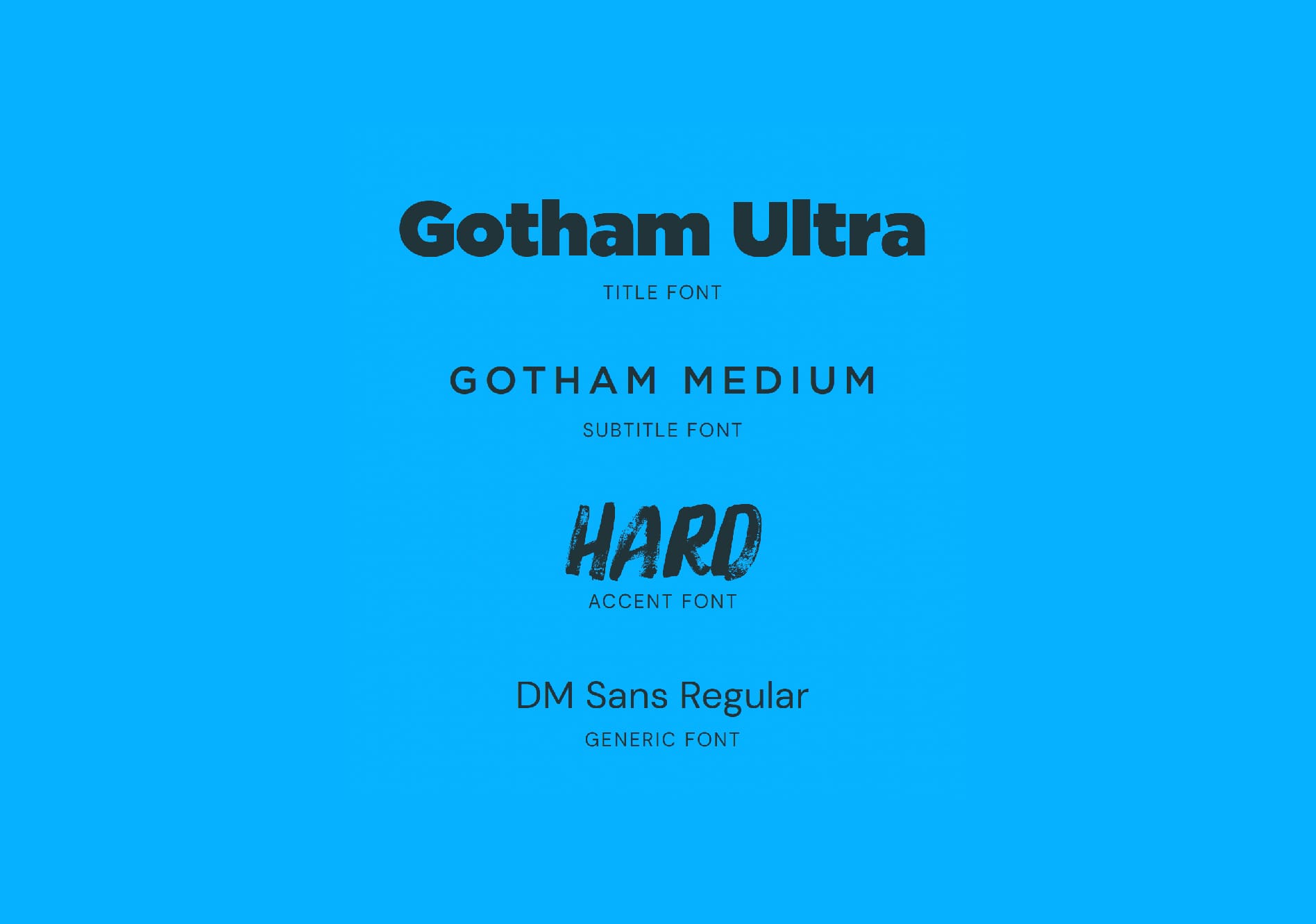 For the second concept, we chose Montserrat Light as the title font, Gotham Book as the subtitle font, and Hard as the accent font. These fonts keep the masculinity of the first concept, but taps into the high-tech aspect as well.