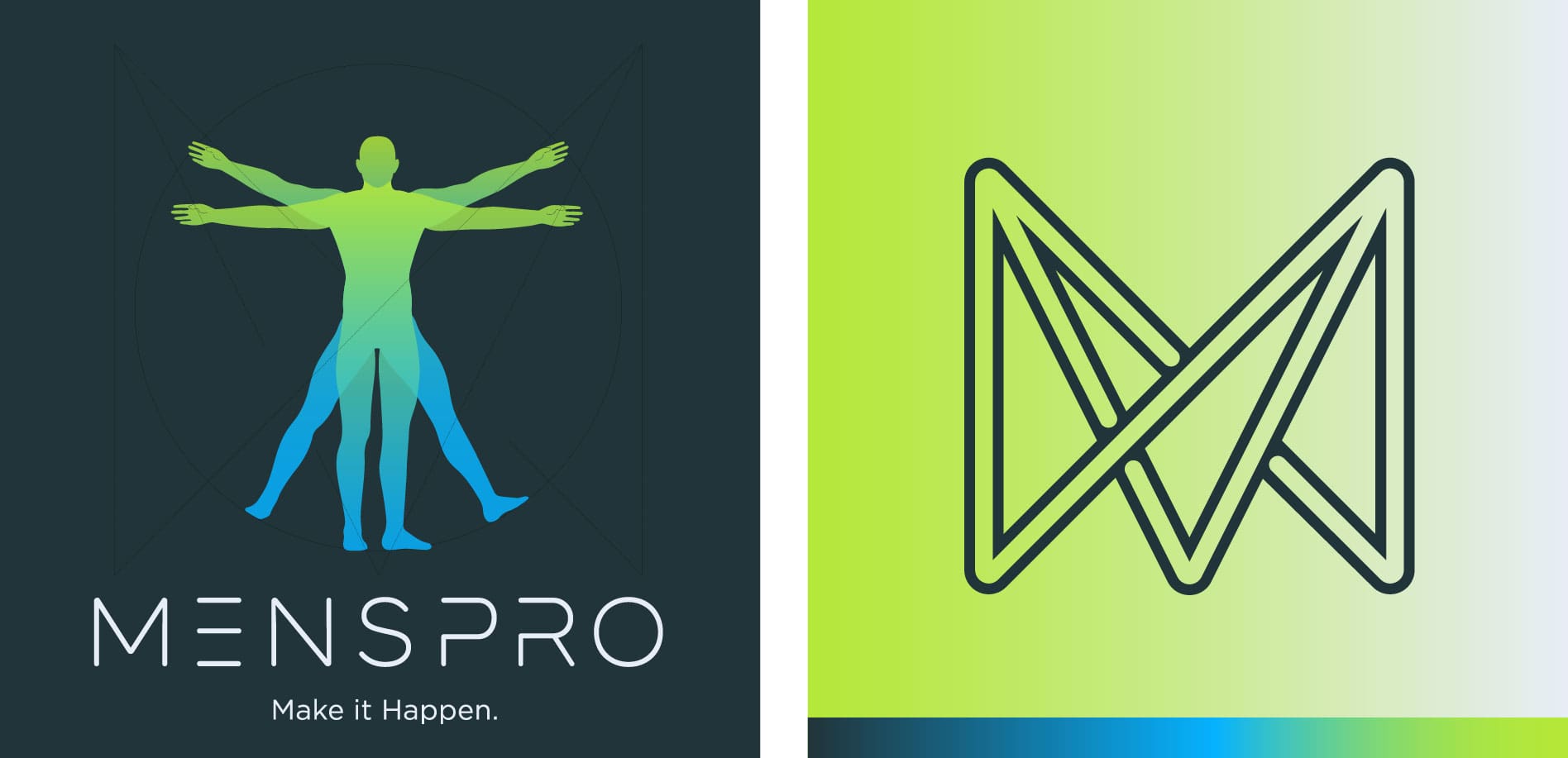 The logo design for the first concept is the business’ name in a sporty font with hues of both darker and lighter greens to highlight Men’s Pro Clinic’s dynamic nature.