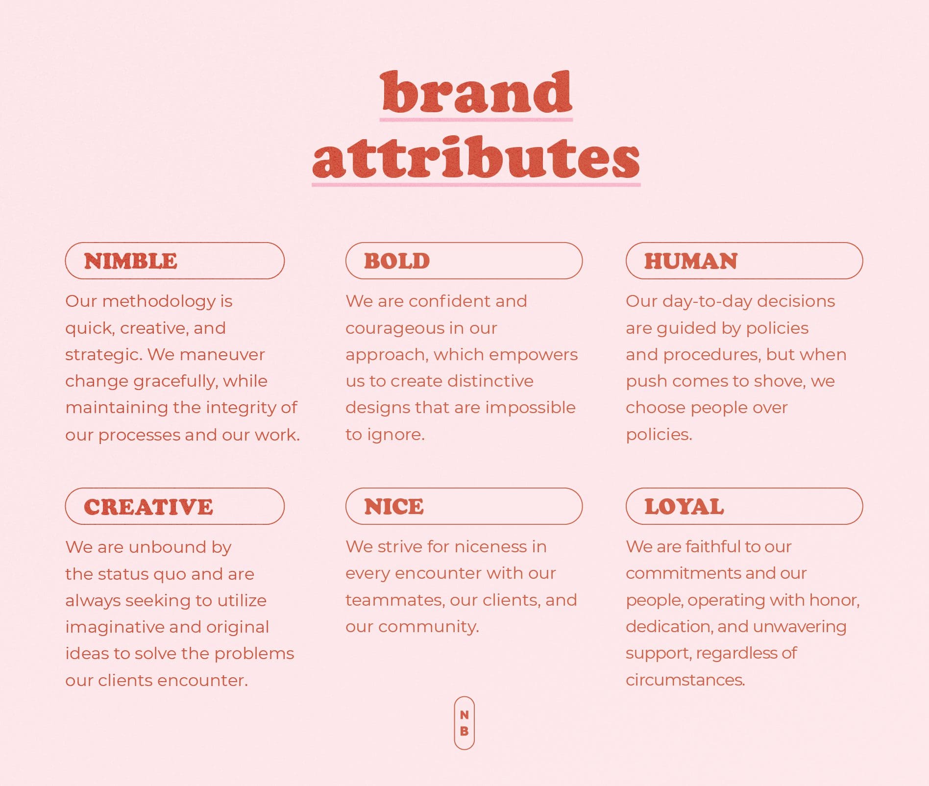 You see, the brand is not just the logo. Your brand isn’t your color palette or font set. Instead, your brand is the foundation that informs who you are and how you want to be perceived. Your brand is your positioning statement, attributes, and your overall visual direction.